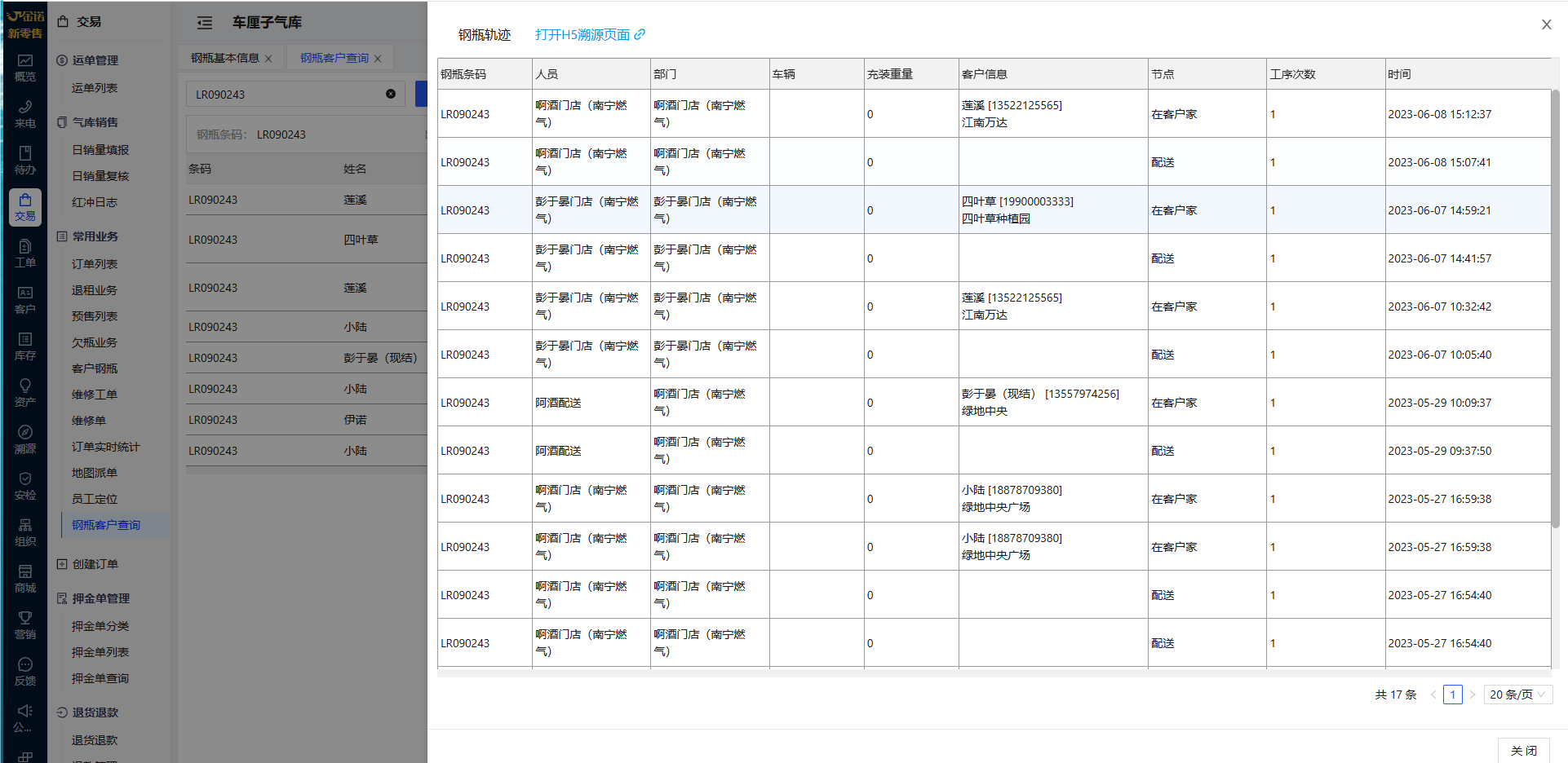 菜单位置:【资产】-【常用业务】-【钢瓶客户查询】