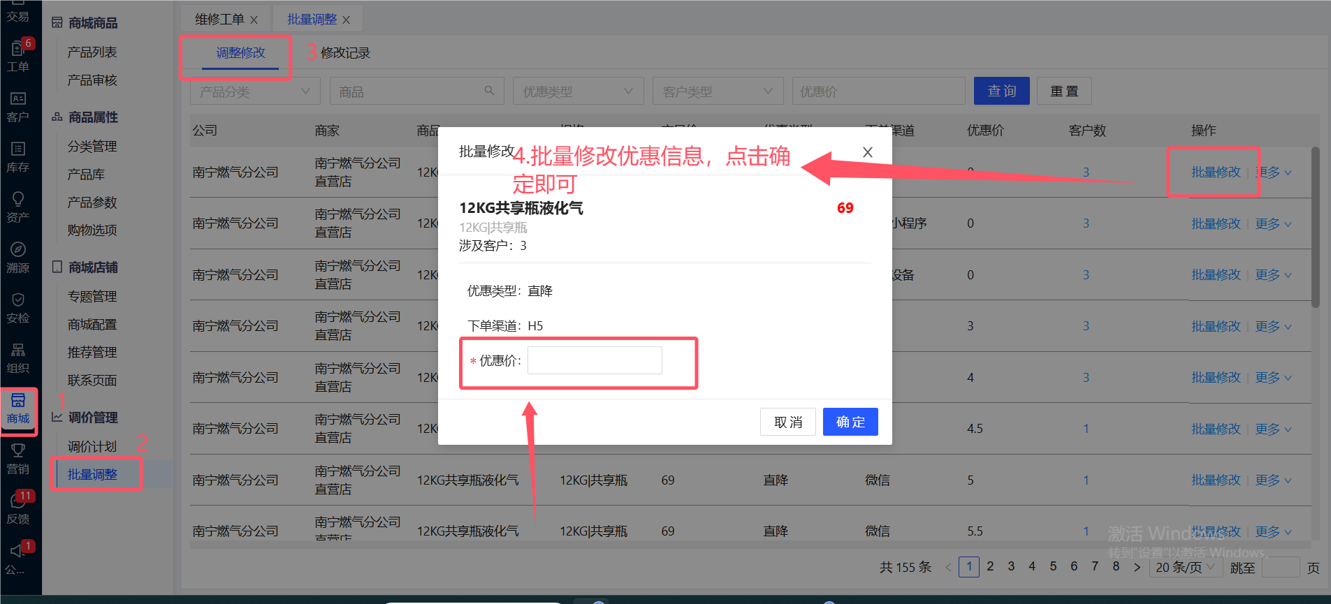 可查看有个人优惠的所有家庭/商业客户,批量修改个人优惠的价格。比如:比如想知道有A商品的个人优惠的家庭客户,那么选择A商品和家庭客户即可查看;修改/删除A商品的所有个人优惠