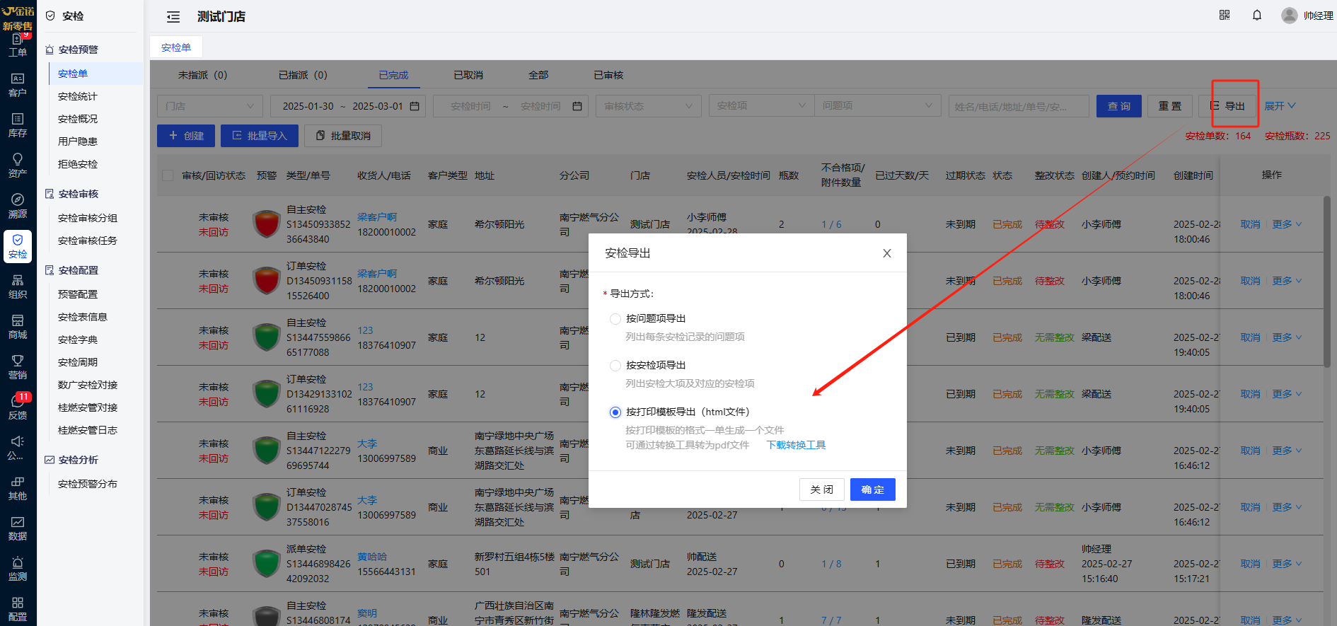 按打印模板导出时,一单安检单根据各自的打印模板生成一个html文件,最终打包为一个压缩包文件在导出记录查询中供下载