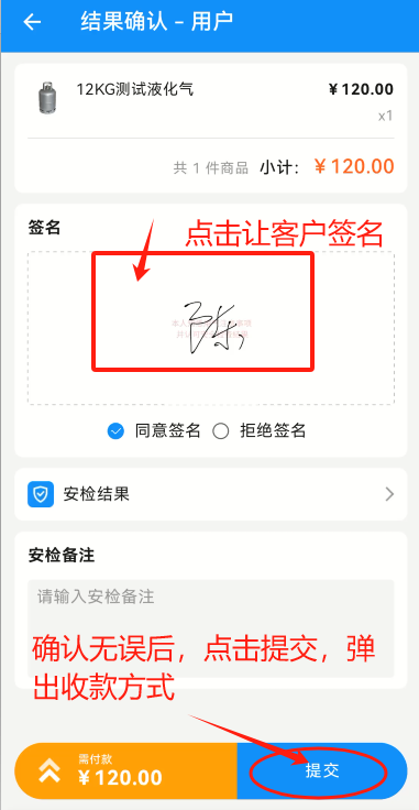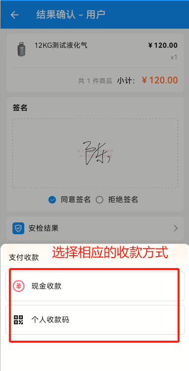 (3)安检完成,进入收款页面,如果客户租瓶则要添加押金单商品(如果客户临时需要加购商品,也可在“其他商品”添加),如果订单上已加有押金单,则无需再添加。